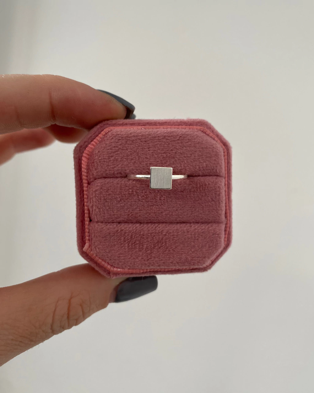 Esse anel de chapa com formato quadrado traz um toque moderno e elegante, perfeito para quem ama joias com personalidade.