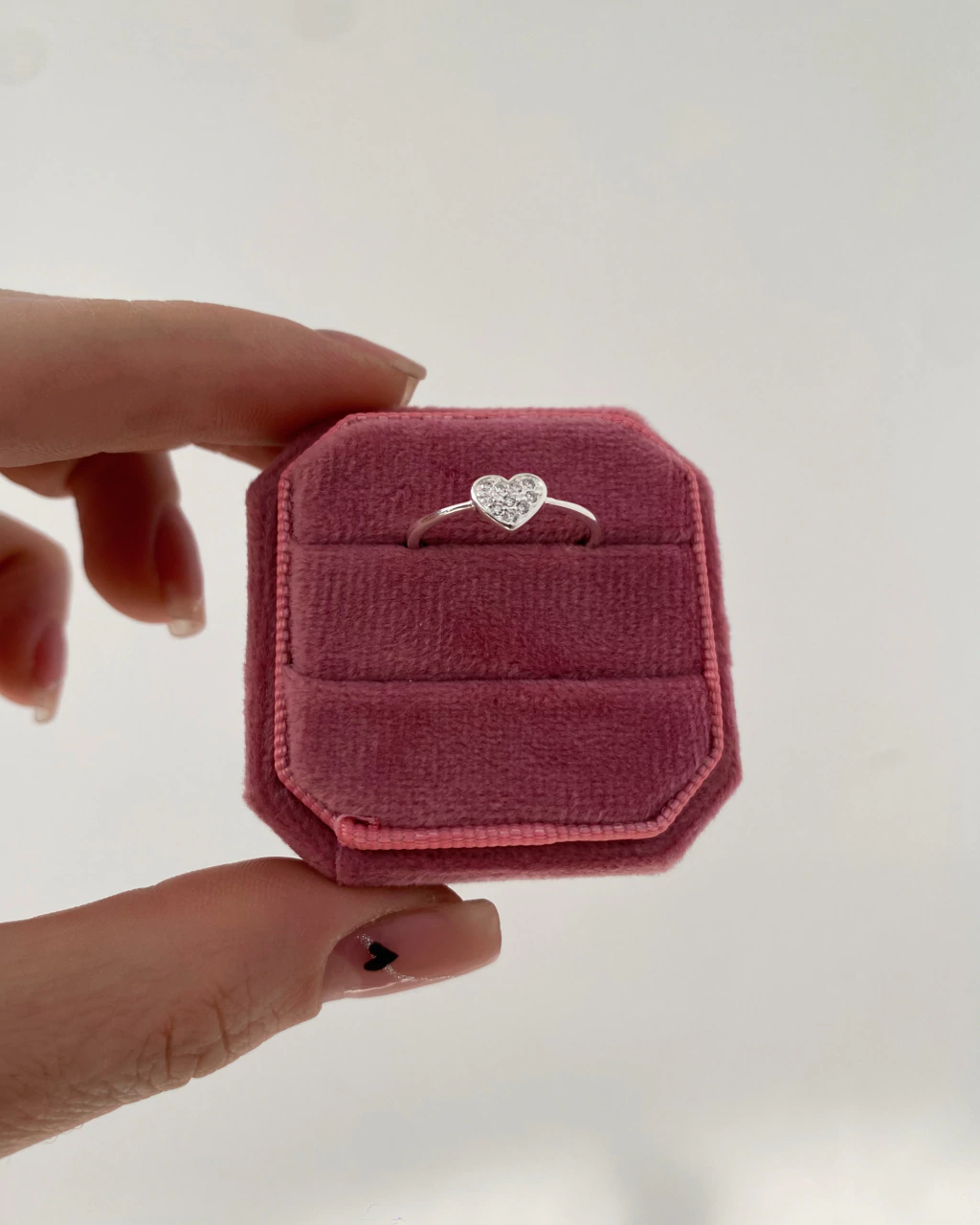 O Anel Mini Coração Cravejado é ideal para quem ama detalhes delicados com um toque de brilho. O coração central, cravejado com microzircônias, simboliza amor e leveza — uma joia que fala por si só.
