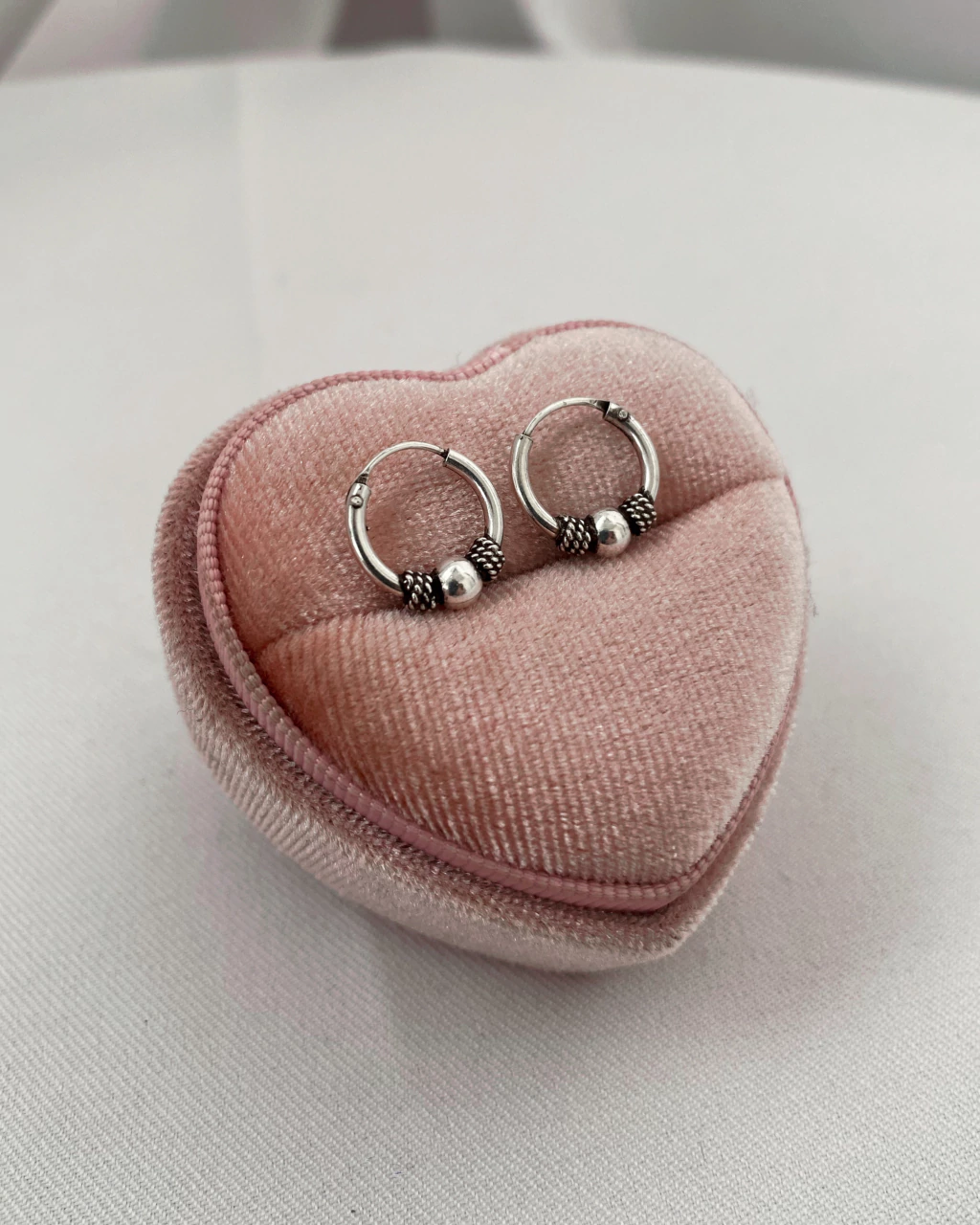 Argola Canoa - coração - 1,4 cm - fecho torção - em Prata 925