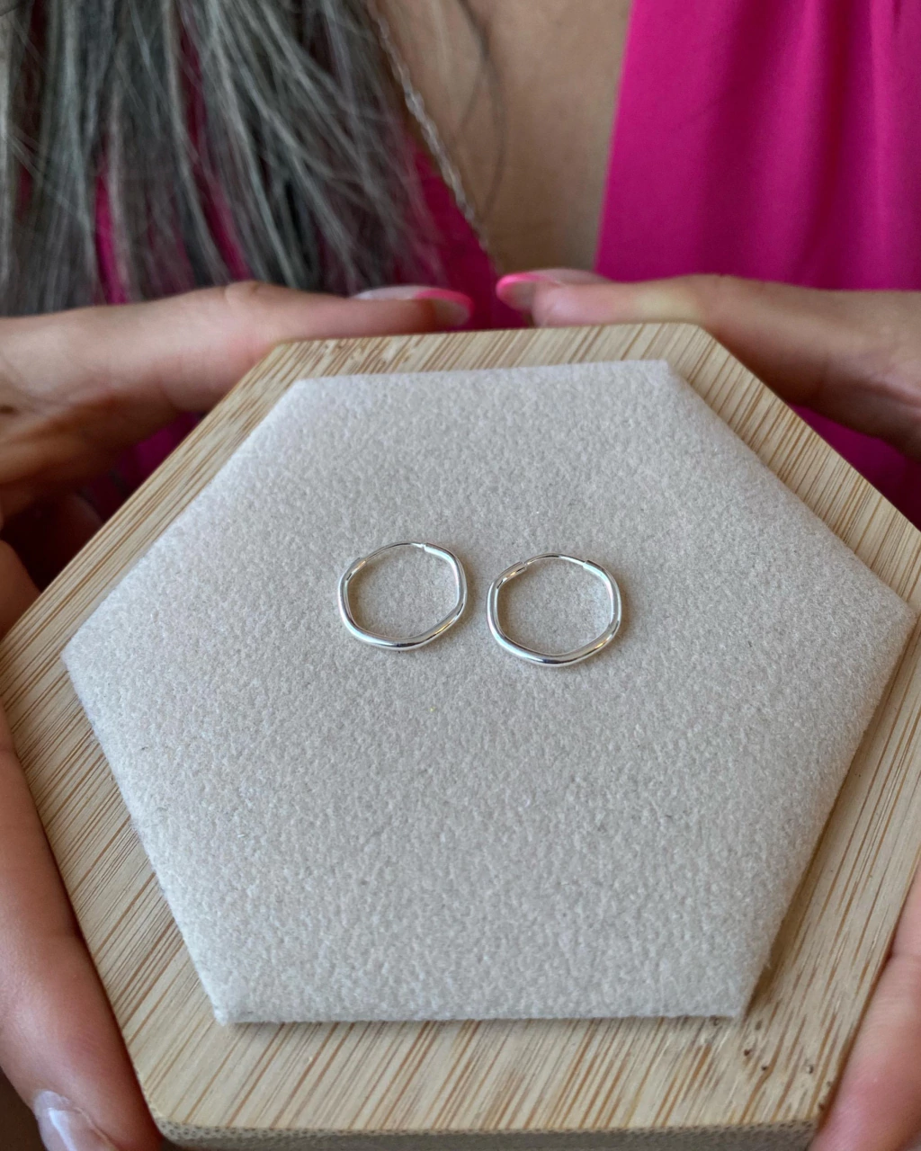 Pequena no tamanho, mas cheia de estilo, a Argola Hexagonal de 1,3 cm é perfeita para composições delicadas e modernas.