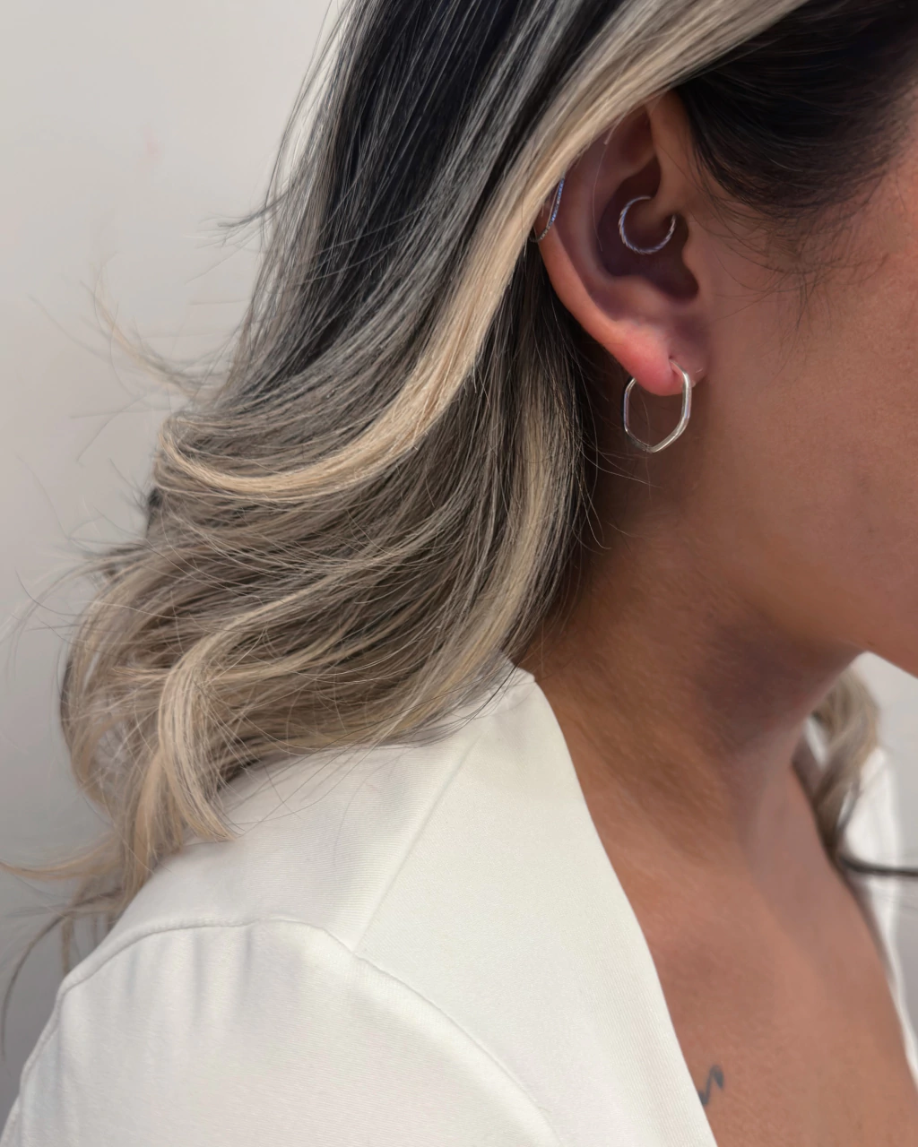 Argola Hexagonal - fio quadrado - 1,8 cm - fecho torção - em Prata 925