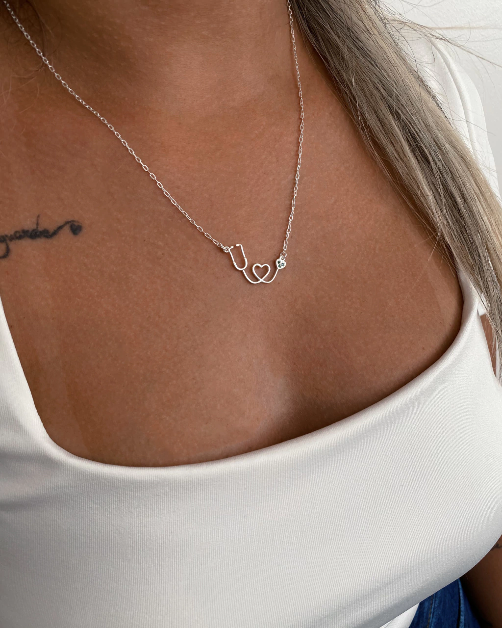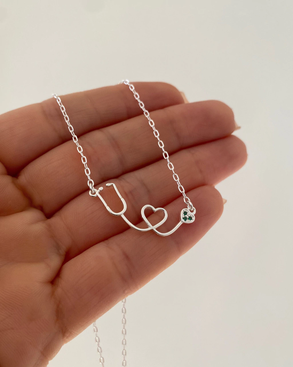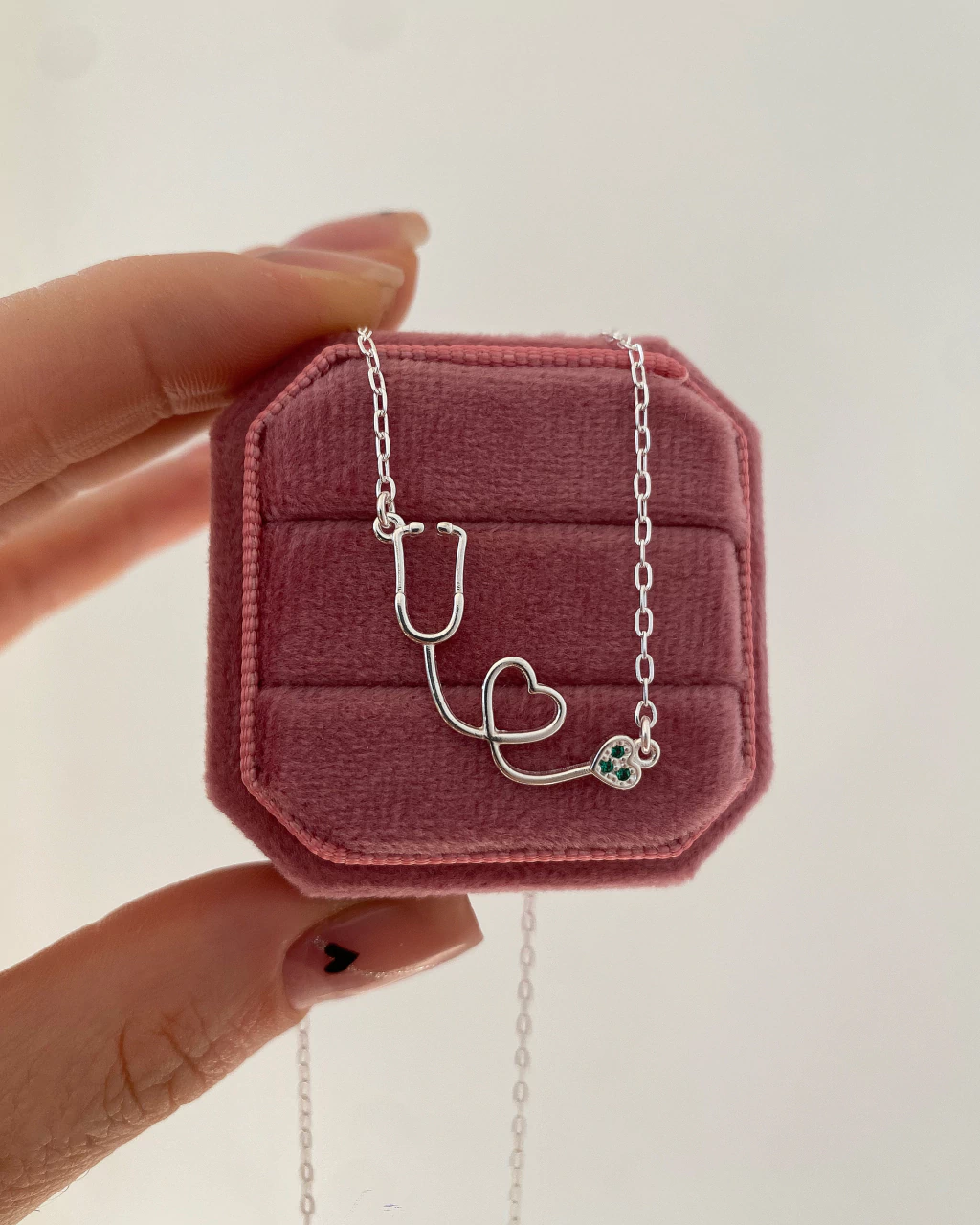 Delicado e cheio de significado, o Colar Estetoscópio com Zircônia Verde é uma homenagem sutil e elegante àqueles que dedicam suas vidas ao cuidado com o outro.