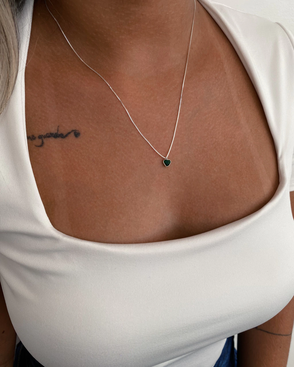 Colar ponto de luz - 5 mm - coração verde - em Prata 925