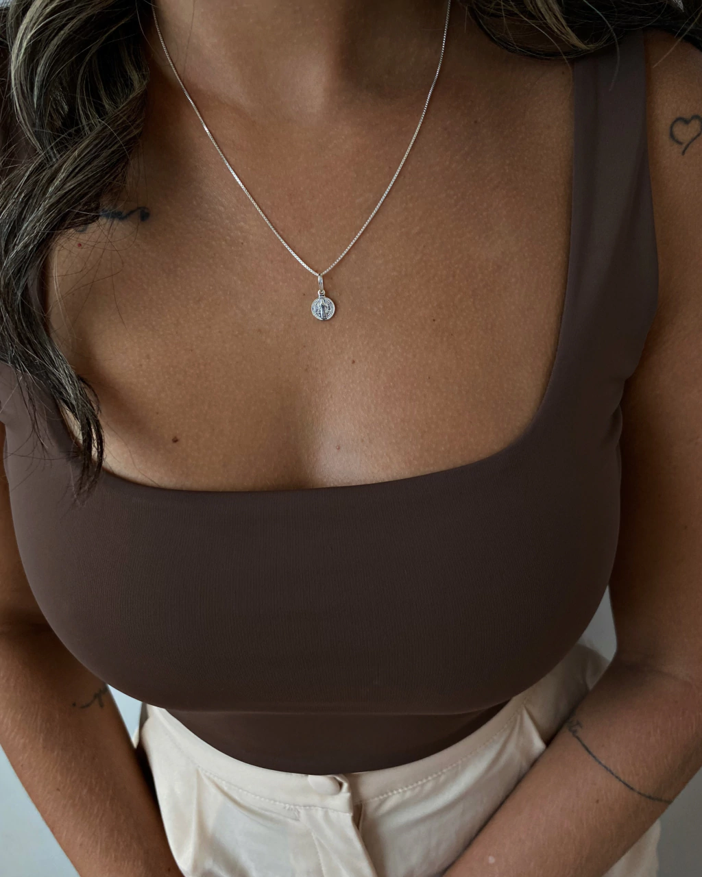 O Colar São Bento - 0,8 cm - corrente 45 cm é um acessório que une proteção e estilo em uma peça delicada e significativa. Com o medalhão de São Bento medindo 0,8 cm de altura, ele traz consigo a tradicional simbologia de fé e proteção, ideal para quem deseja carregar consigo um amuleto poderoso no dia a dia.