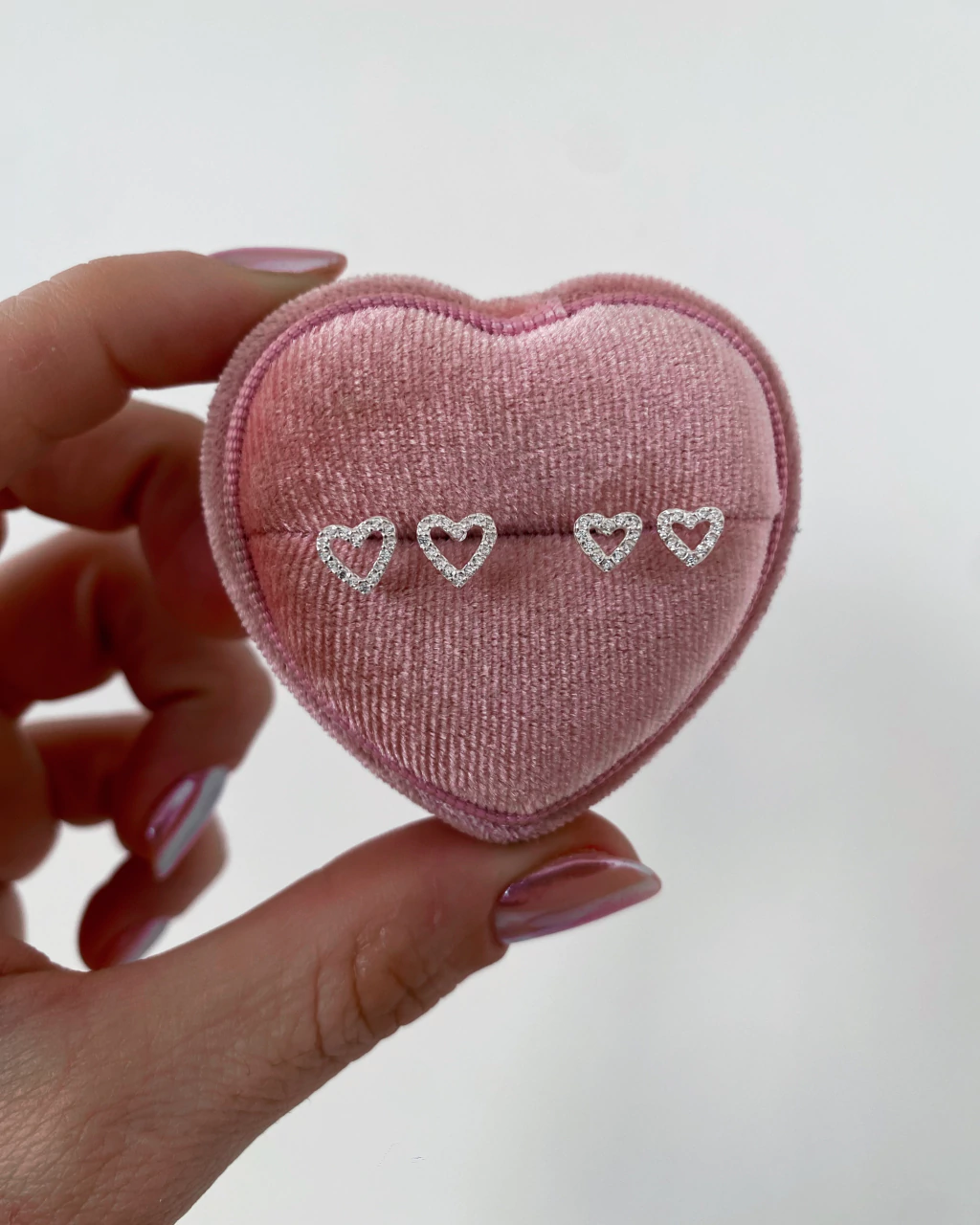 Duo de Brincos Corações Vazados Cravejados 5 mm e 6 mm em Prata 925