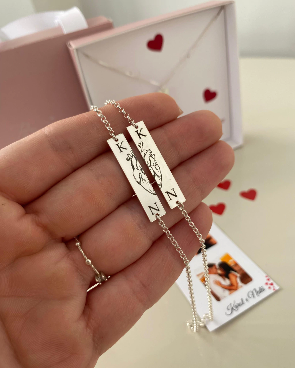 Transforme momentos em eternidade com nosso kit exclusivo de duas pulseiras com placas em Prata 925, feitas para simbolizar conexões únicas.