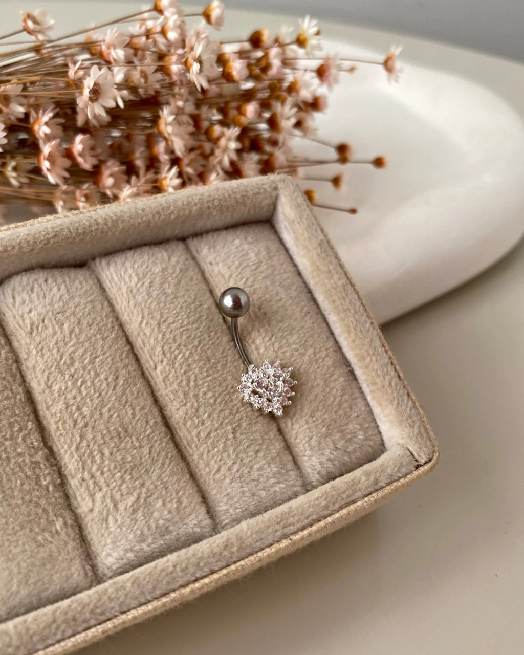 Piercing umbigo - círculo/flor cravejada - 8 mm