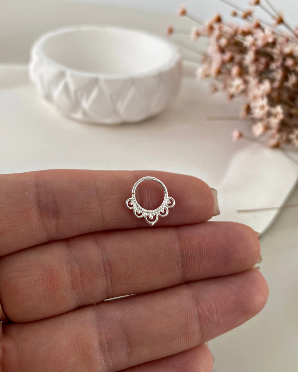 Piercing indiano - torção - 8 mm - em Prata 925