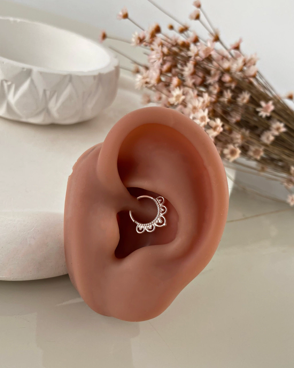 Piercing pino folhagem lado direito - com haste em aço cirúrgico e topo em prata 925