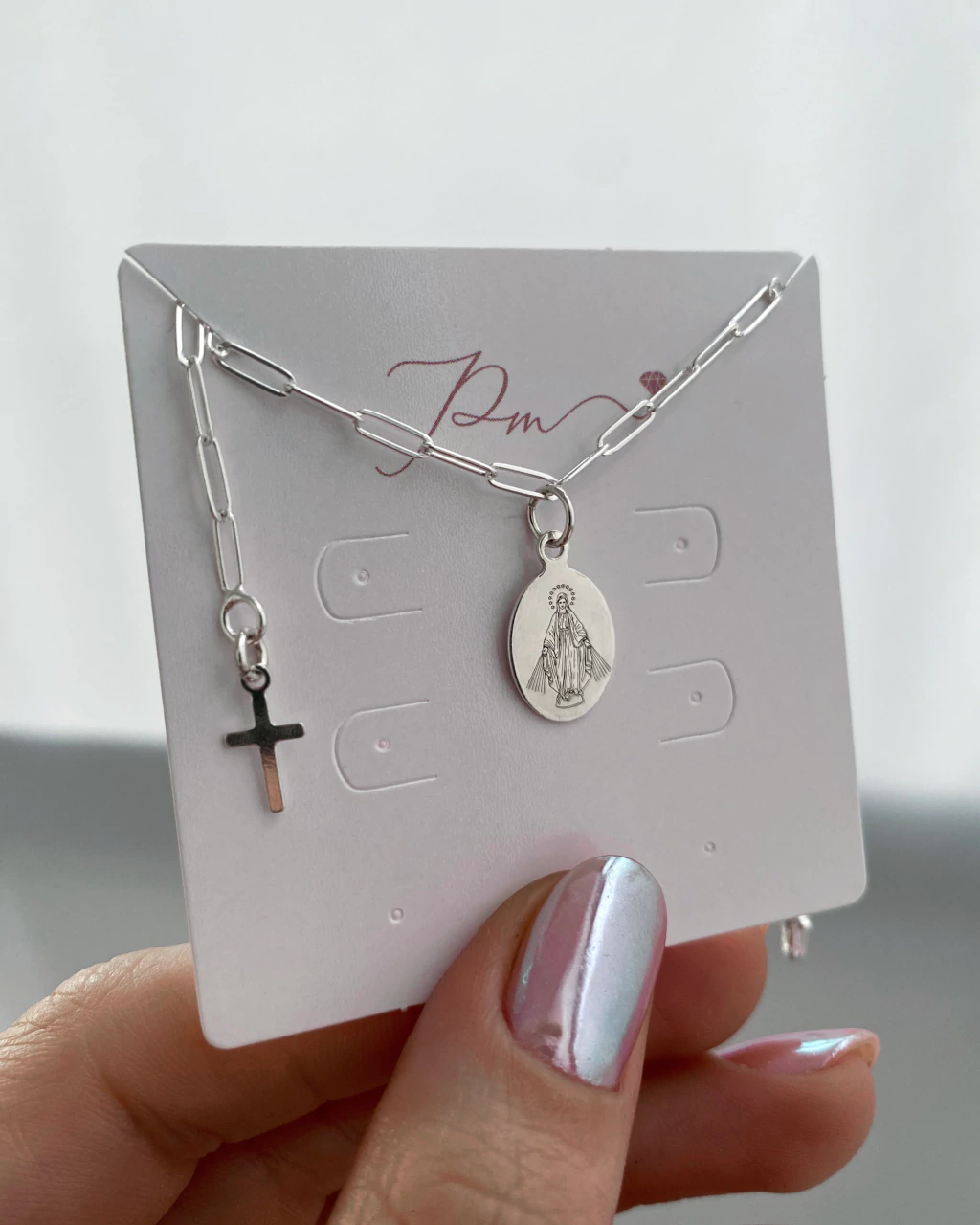 A Pulseira Cadeado em Prata 925 com Nossa Senhora das Graças e Pingente de Cruz é uma joia repleta de significado espiritual.