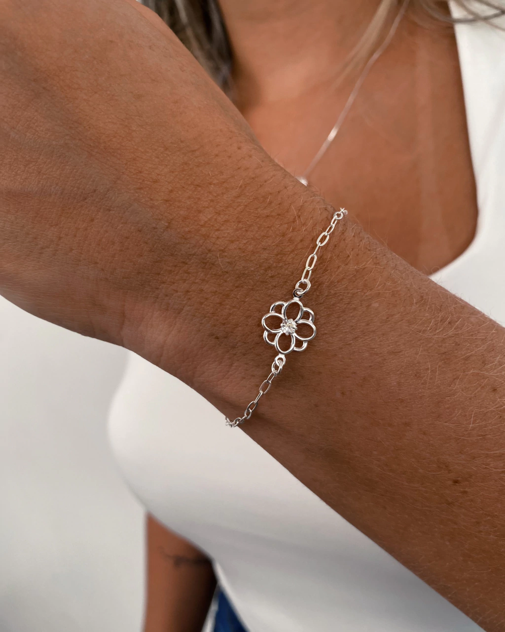 Pulseira flor vazada com ponto de luz - em Prata 925