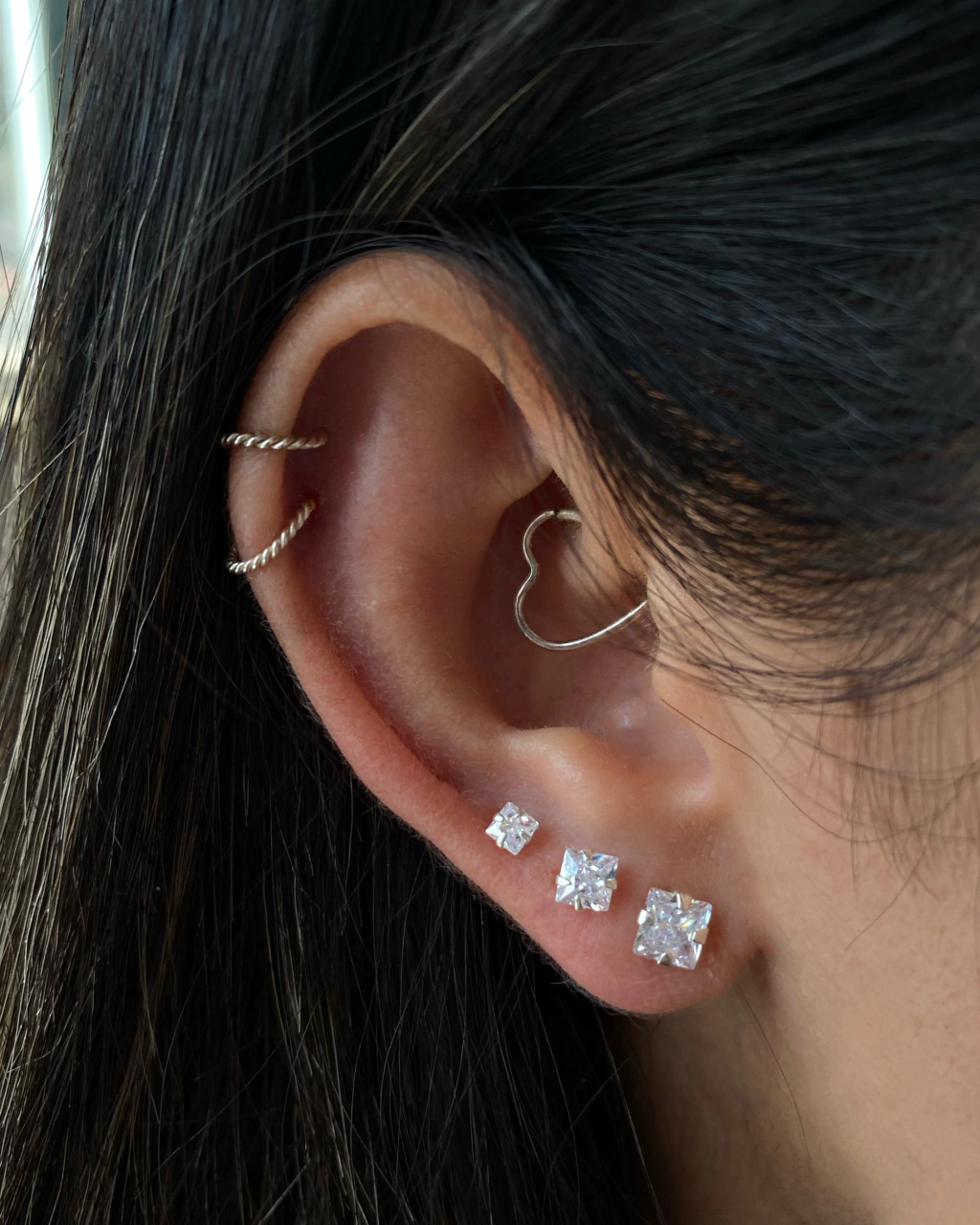 Adicione um toque de brilho sofisticado ao seu visual com este trio de brincos ponto de luz em formato quadrado, delicadamente confeccionados em Prata 925 legítima. Com pedras nos tamanhos 3, 4 e 5 mm, esses brincos são perfeitos para quem ama versatilidade e elegância minimalista.